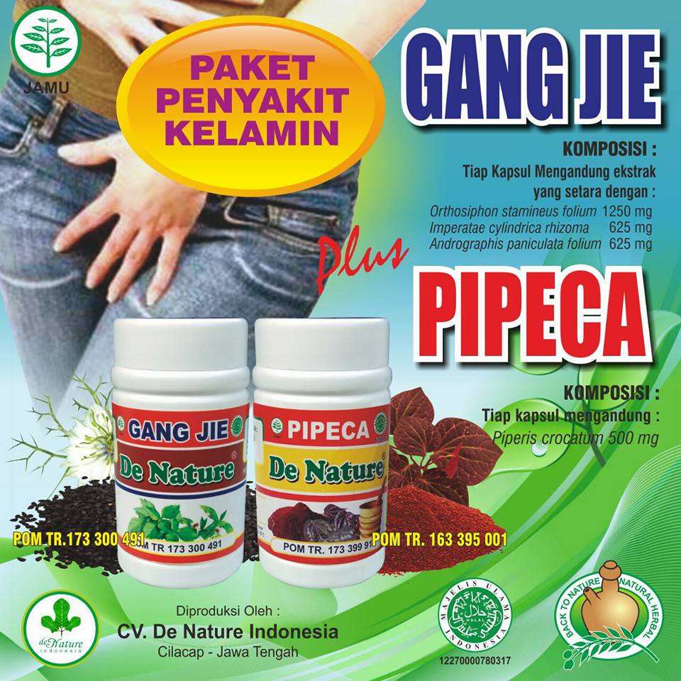 Obat ini dibuat dari bahan alami yang disebut dengan ( piper crocatum ruiz ).manfaatnya sebagai antiseptik atau mengobati radang, antidiabet atau obat diabetes militus,hepatitis, asam urat, batu ginjal,menurunkan kolestrol.mencegah strok,keputihan,radang prostat,radang mata, maag,kelelahan,nyeri sendi dan memperhalus kulit.TERBUAT DARI EKSTRAK DAUN SIRIH MERAH UNTUK MENCEGAH LESI ATAU RUAM DI BAGIAN TUBUH YANG DI SEBABKAN OLEH BAKTERI SIPILIS DAN KENCING NANAH.